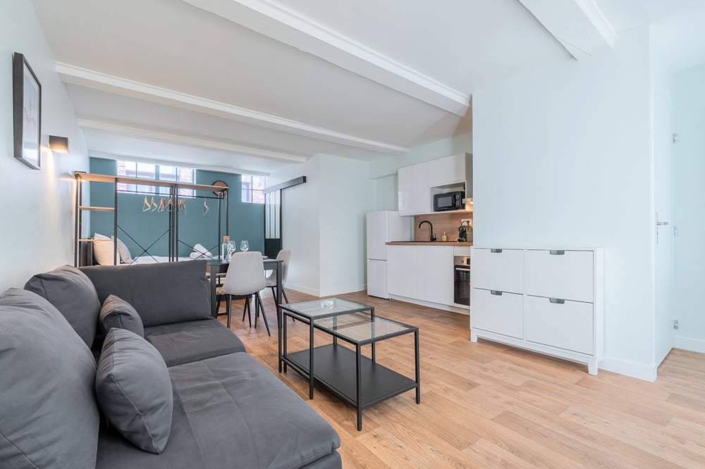 The apartment is located on rue Coquerez, on the second floor of a beautiful Lille building, and you'll have access to the entire unit. It comprises a beautiful living room with lounge, dining area, fitted kitchen and bedroom area, and a bathroom with walk-in shower. Please note: Due to the layout of the property, the windows cannot be opened. However, the space is well-ventilated and equipped with an air circulation system to ensure a comfortable stay. Rihour metro station is 6 minutes away and there's parking nearby. The apartment is comfortable and well-kept. You'll love the atmosphere! The apartment will be carefully prepared for your arrival: Professional cleaning service + laundry service for household linen. All linen is provided: bed linen, bath towels, bath mats and tea towels. The kitchen is equipped with all utensils and dishes for breakfast and dinner. Entertainment available via TV: Molotov TV and Prime Video. Perfect for couples, singles or business travelers who want to enjoy downtown Lille!