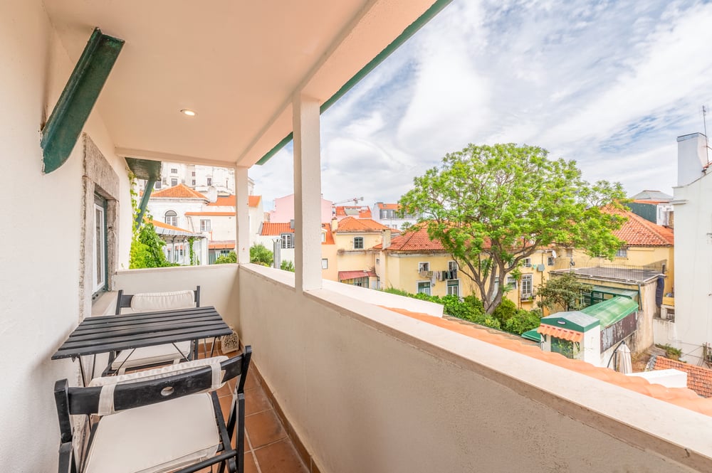 Welcome to my studio! This charming 65m² duplex studio in Lisbon offers a warm and inviting retreat for families or friends looking to enjoy both comfort and character in a traditional, lively neighbourhood. Spread across two levels, the main floor features an open-plan living area with a double sofa bed, a TV to enjoy your favourite shows, and a dining table ideal for shared meals. The kitchenette is fully equipped with everything you need to prepare delicious home-cooked dishes, including a stove, oven, microwave, cookware, and cutlery. For added convenience, the studio also features a dishwasher for easy cleanup and ironing equipment to take care of your laundry needs during your stay. You'll also find the bathroom on this level, complete with fresh towels and complimentary toiletries. Step onto the private balcony to savour the fresh air and enjoy a serene outdoor moment during your visit. Upstairs, there is another living room with a seating area and a double bed equipped with hotel-quality linens and ample storage for your belongings, providing a peaceful space to rest. Guests also have access to a shared outdoor terrace with a seating area, perfect for unwinding in the open air. For those who enjoy cooking outdoors, there's also a shared BBQ, ideal for relaxed evenings with good food and company. BE AWARE THAT THE STUDIO IS LOCATED ON THE FIRST FLOOR WITHOUT AN ELEVATOR. The studio is always professionally cleaned for your comfort. Please note: there are several steps inside the apartment complex, after entering through the main gate. Enjoy your stay!