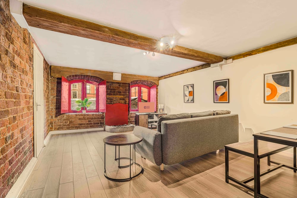 Welcome to a charming 43 sqm apartment in the heart of Liverpool's iconic Cavern Quarter, perfect for three guests. This character-filled home features rustic exposed beams, a modern kitchen, and a comfortable bedroom, all within walking distance of the legendary Cavern Club and vibrant city center. Ideal for music lovers and city explorers seeking authentic Liverpool charm.