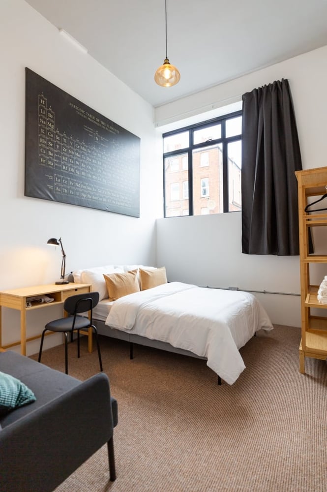 Welcome! Situated on the ground floor, this modern and tastefully decorated 10 m² room is perfect for those seeking peace and tranquillity while staying close to London. The room has a double bed, complimentary hotel-quality linens for maximum comfort, and a desk. It is also secured with an integrated lock for your peace of mind. The shared kitchen is fully equipped with essential cookware and cutlery, including a stove, oven, and microwave, for you to cook delicious meals. The apartment also has a washer and ironing equipment for your laundry needs. This room has access to two shared bathrooms with showers and one shared WC. The bathrooms contain all necessary amenities, including towels and complimentary toiletries. Note that this is a private room inside a four-bedroom flat. If you book all four rooms, you will have the whole flat. The apartment is always professionally cleaned for your comfort. Enjoy your stay!