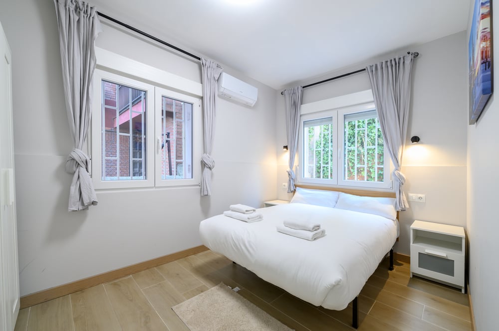 Welcome! This charming 81 m² apartment is perfectly located near Madrid-Barajas Airport, as well as shops, supermarkets, and the Plenilunio shopping center. The living room features a comfortable sofa to relax on, a TV to enjoy your favorite shows, and a dining table that's perfect for sharing meals in good company. The open-plan kitchen is fully equipped with everything you need to prepare delicious home-cooked meals, including an electric cooktop, oven, microwave, coffee maker, and all essential utensils and cookware. For your convenience, there’s also a washing machine available. The apartment has three cozy bedrooms: one with a double bed and wardrobe, and two others with two single beds each—one of these also includes a crib, perfect for families with young children. All beds come with clean linens. The bathroom is stocked with fresh towels and complimentary toiletries, so you have everything you need to refresh and feel at home. For your comfort and peace of mind, the apartment is professionally cleaned before each stay. Enjoy your stay! Note: This apartment is for temporary rental – not available for tourist stays. To complete the booking, it is essential to sign a seasonal rental agreement and provide proof of the reason for your stay. After booking, you will receive a contract to sign. Without the signed agreement, the reservation will be canceled with no right to a refund.