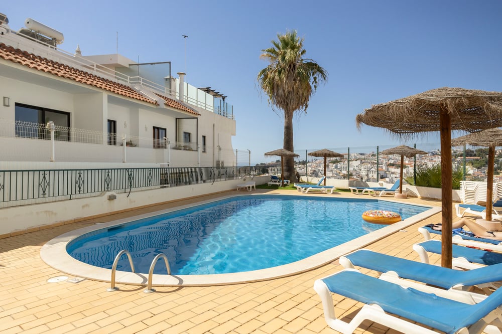 Welcome to this stylish T1+1 apartment, perfect for families, couples, or small groups looking for comfort and practicality during their holidays. The space features two double beds and a sofa bed in the living room, comfortably accommodating up to 5 guests. The private balcony offers a pleasant sea view — ideal for enjoying breakfast outdoors or unwinding at the end of the day. The apartment is fully equipped with air conditioning, a functional kitchen, Wi-Fi, and all the essentials for a relaxed and convenient stay. The décor is simple and functional, creating a welcoming and laid-back atmosphere. Located in a quiet residential area near Albufeira and some of the region’s most popular beaches, the apartment provides easy access to the coastline, restaurants, supermarkets, and local services. Approximate distances to key spots: *Praia dos Pescadores – around 900 m *Albufeira Old Town – 5 km *Albufeira Marina – 4.5 km *Praia de São Rafael – 7 km *Golf courses – within a 10-minute drive *Faro Airport – approx. 35 km The location is excellent for exploring the Algarve, with plenty of options for leisure, dining, and nature nearby.