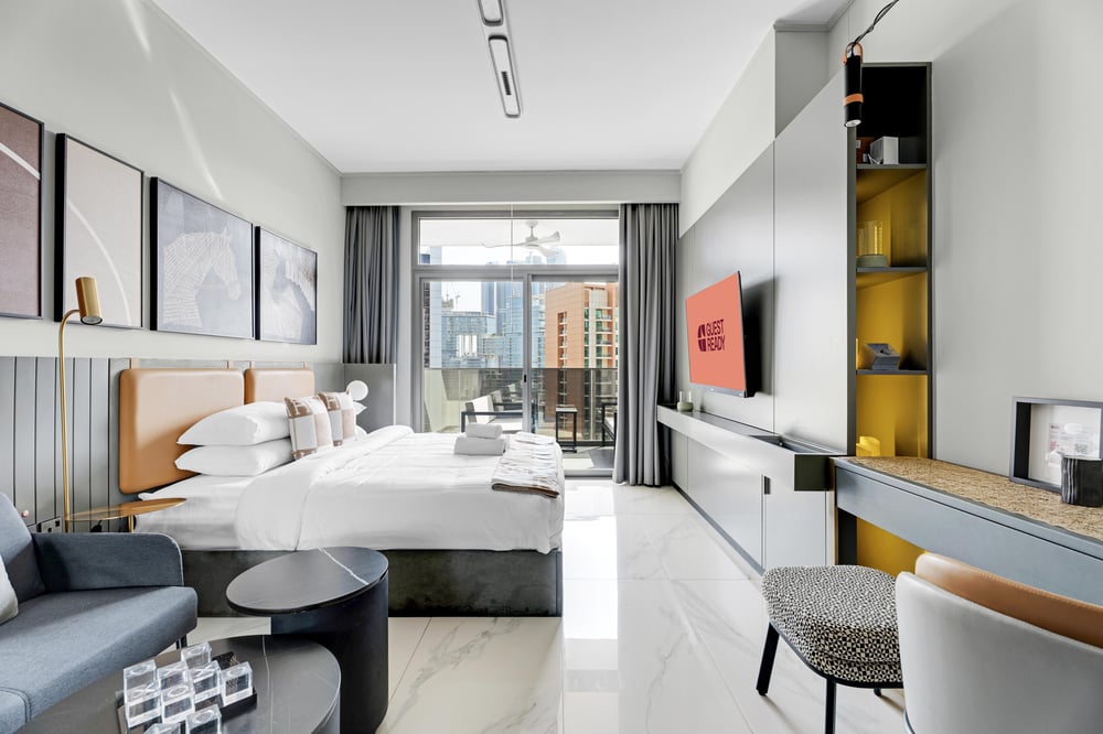 A spacious and stylish studio apartment in the heart of Business Bay, ideal for both short and long stays. Thoughtfully designed with modern décor, it offers a fully equipped kitchen, a cozy living and sleeping area, and all the essentials for a comfortable stay. Located close to cafés, restaurants, shops, and convenient access to transport links, it’s perfect for business and leisure travelers seeking convenience and comfort in Dubai.