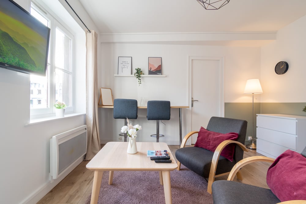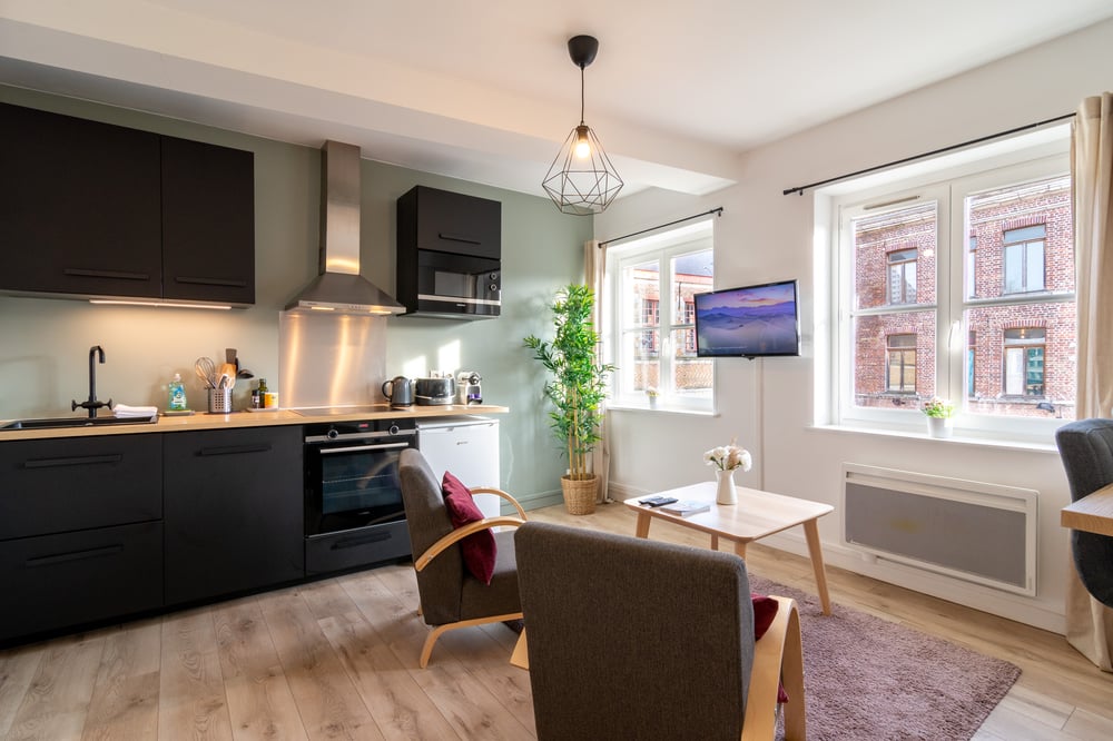 Please note that the facade of the building is currently under construction. This may cause some noise pollution and the passage of workers near the windows, during the day only. The flat is located on Place Saint Hubert, on the second floor of a small building, and you will have access to the entire unit. It comprises a living room with lounge, fitted kitchen, table and high chairs. A bedroom with a 140x200 double bed, a bathroom with shower and a separate WC. Like many parts of our beautiful city of Lille, the area can be lively at night! The flat will be carefully prepared for your arrival: Professional cleaning service + laundry for household linen. All linen is provided: bed linen, bath towels, bath mats and tea towels. The kitchen is equipped with all utensils and dishes for lunch and dinner. Entertainment available via TV: Molotov TV, Prime Video! The staircase to access the accommodation is typical of our pretty buildings in Lille: the stairs are narrow, so we recommend that families with young children or people with mobility difficulties take this into consideration before booking and do not bring heavy luggage. Ideal for couples, singles or business travellers, you'll love the comfort and central location of this flat!