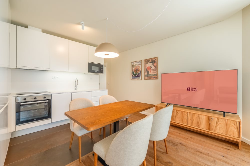 Welcome to my apartment! Bathed in natural light through its large windows, this charming and tastefully decorated 67m² one-bedroom apartment in Lisbon is the perfect retreat for couples looking for a comfortable and relaxing vacation home. Situated on the 2nd floor and accessible by lift, the space offers a warm and inviting atmosphere. The open-plan living area is thoughtfully designed, featuring a comfortable seating area, a flat-screen TV for your favourite shows, and a dining table ideal for enjoying meals together. The well-equipped kitchenette comes with everything you need to prepare delicious home-cooked dishes, including a stove, oven, microwave, and a full set of cookware and cutlery, ensuring a seamless cooking experience. The bedroom offers a plush king-size bed dressed with hotel-quality linens, along with ample storage to make you feel right at home and ensure a restful night’s sleep. The bathroom is fitted with all the essentials, including fresh towels and complimentary toiletries for your convenience. For your peace of mind, the apartment is professionally cleaned before each stay, ensuring a spotless and comfortable home away from home. Enjoy your stay!