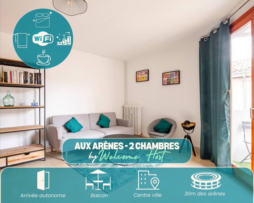 🏡 Spacious and Elegant Apartment: Located in the heart of Nîmes, this 2-bedroom apartment can accommodate up to 4 people, making it ideal for family or friends’ stays. 📍 Prime Location: Just 30 meters from the Nîmes Arena, you’ll be able to easily explore historical monuments and enjoy local attractions. Additionally, the Palais des Congrès, soon to be completed, is just 10 meters away, providing direct access to events and conferences. 🚗 Arenes parking-lot 50 meters from the apartment 🌿 Warm and Refined Atmosphere: The apartment combines elegance and comfort. With two spacious, light-filled bedrooms—one with two single beds and the other with a double bed—it’s perfect for families or small groups. ❄️ Air Conditioning for Optimal Comfort: Enjoy air conditioning to ensure cool, pleasant nights, even during the hottest days. 🛋 Welcoming Living Space: The modern living room is perfect for relaxing after a day of sightseeing. 🛏 Linens and Towels Included: All essentials are provided for a comfortable stay. 🚶♂️ Easy Access to Transport: The Esplanade Feuchères bus station and Nîmes train station are just a few steps away, making your travels convenient and quick. 🧴 Essential Products Provided: Soap, shower gel, and other toiletries are available for your use. ✨ Nice House Rules 🎉 No parties, but lots of great moments with family or friends. 🚭 No smoking inside for a healthy environment. 🤫 Respect for neighbors and the tranquility of the premises. ✨ Stay here and enjoy an exceptional location in Nîmes, blending history and modernity. Book now for an unforgettable experience! 💫