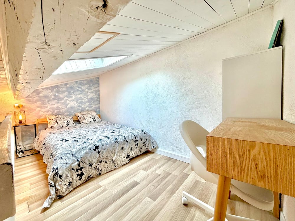 The studio is located on the second floor of a townhouse. Perfect for active people, this flat is accessible via a steep staircase, a layout that ensures peace and privacy. This accommodation is not suitable for people with reduced mobility.