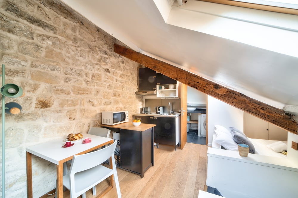 There are more cool bars and excellent restaurants in the area than you will need !Once you pass the doors of the buiding, you will enjoy the Marais and its old streets, new shops, trendy restaurants. A few minutes away from your nest, start your day with a healthy breakfast at Bob's Kitchen, then spend some money you don't have in a vintage shop like Omaya vintage or buy things you don't need at Hema, let you seduce by the fresh and colourful fruits and vegetables from the Marché des Enfants Rouges or by a meal at one of the many Asiatic restaurants of the neighbourhood, catch an independent film at the MK2 Beaubourg cinema or a contemporay exhibition at the Centre Pompidou, learn about techniques at the Musée des Arts et Métiers located in a former abbey, and finally, start your night with an exotic cocktail and Mexican tapas at the Candelaria before heading for a concert at the Gaité Lyrique.