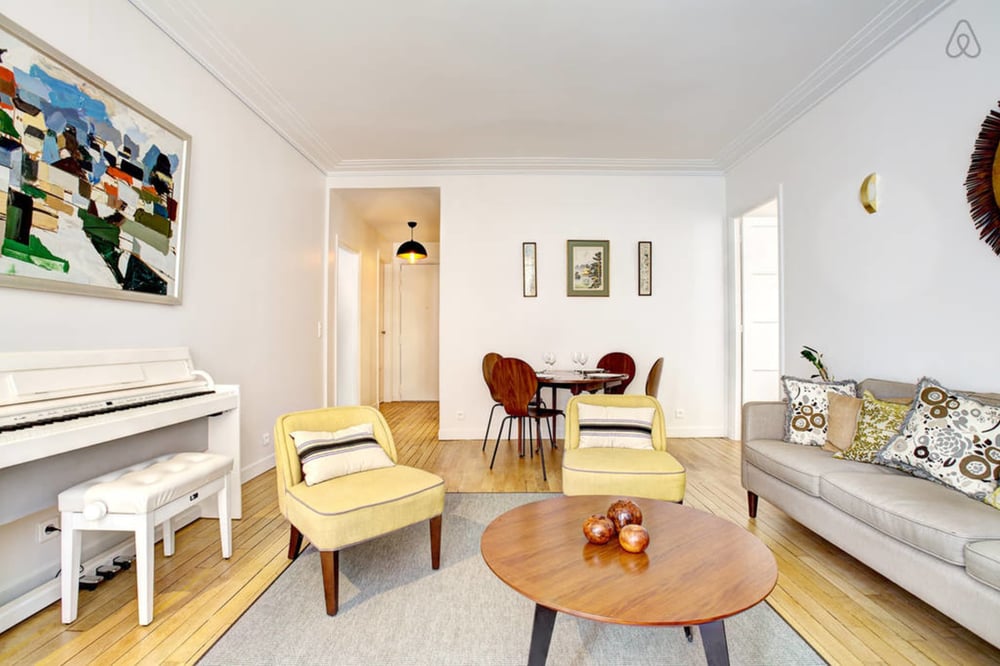 Welcome to my home! Set in the 16th district, this trendy refurbished flat uses a minimalist element in its design and decor. The calming and clutter-free ambiance will encourage guests to unwind after a long day in the metropolis. Relax in the living room which features a plush sofa, plenty of armchairs and a beautiful piano ready to be played by you! There's also a dining area where you can eat your meals with loved ones. Whip up a delicious homecooked meal in the fully equipped kitchen using the various appliances and cutleries that are available. Both bedrooms come with a double bed, a single bed, and a single mattress respectively. Plus, complimentary hotel-quality linens will be provided to ensure you'll have a comfortable sleep! The bathroom is composed of all essential amenities you'll need to freshen up including a bathtub with an attached shower, a sink, and a toilet. Fresh towels and free toiletries will also be provided for your convenience. Enjoy your stay! :)