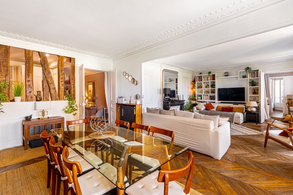 Welcome! Located in the heart of Paris, this elegant 140 m² Haussmann-style home is tastefully furnished and beautifully decorated, offering a stunning view of the Tour Saint-Jacques. The spacious living room is the perfect place to relax and spend quality time with loved ones. It features two comfortable sofas that convert into double beds, along with a large TV for your entertainment. The dining area boasts a large table that can accommodate up to eight guests, making it ideal for shared meals and gatherings. The fully equipped kitchen includes everything you need to prepare delicious meals, from a stovetop and oven to a refrigerator and all essential cookware. Two bedrooms each feature a luxurious double bed, while the third bedroom, perfect for children, offers two cosy single beds. All beds are dressed with premium hotel-quality linens for your comfort. With four bathrooms, you’ll have all the space and convenience you need. Each one is thoughtfully designed and equipped with modern amenities, including a bathtub and toilet. Fresh towels and toiletries are also provided. Enjoy seamless connectivity with high-speed Wi-Fi throughout your stay. For your safety, a smoke detector is installed. The apartment is professionally cleaned between stays, ensuring a pristine and welcoming environment for every guest. All that’s left to do is relax and enjoy your Parisian getaway!