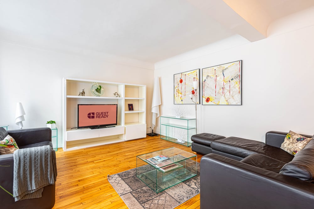 Welcome! Step into this 94 m² apartment and discover a bright, beautifully decorated space designed with care and sophistication. The living room invites you to relax with its ultra-comfortable sofas and television. The dining area can accommodate up to four guests, perfect for enjoying meals together. The fully equipped kitchen offers everything you need to cook just like at home: oven, microwave, coffee machine, kettle, toaster… A washing machine is also available for your convenience. Both bedrooms feature queen-size beds (160x200), dressed with high-quality hotel-grade linens for a restful night’s sleep. A workspace is also available, perfect for getting work done. Deux salles de bains sont disponibles : l'une comprend un lavabo, une douche et des toilettes ; l'autre est équipée d’une vasque, d’un miroir et d’une douche. Les toilettes sont séparées pour plus de confort. Wi-Fi is available throughout your stay. For your safety, a smoke detector has been installed. The apartment is professionally cleaned between each reservation. All that’s left to do is unpack and fully enjoy your Parisian getaway!