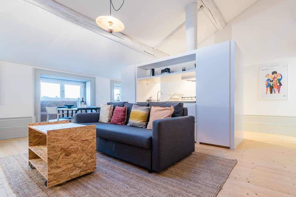 Welcome to our home! A beautiful staircase leads to this third-floor loft comprising a closed double bedroom on the ground floor and another double bed on the mezzanine, as well as a comfortable settee in the living room that converts into a full size sofa bed. The apartment also features two full bathrooms as well as a fully equipped and functional kitchen. In addition to a coffee machine, water kettle, microwave, toaster, oven and stove top, you will find all the utensils necessary for a home-cooked meal. The fantastic location enables quick access on foot to the main touristic spots in Oporto, such as the iconic Lello Bookshop, the Clérigos Tower as well as the river area. All the city’s main attractions are within walking distance of this entirely renovated, fully furnished and equipped apartment that is an 8-minute walk from the S. Bento metro station. Towels and bed linen are provided for your stay. NOTE: The flat is on the 3rd floor without elevator!
