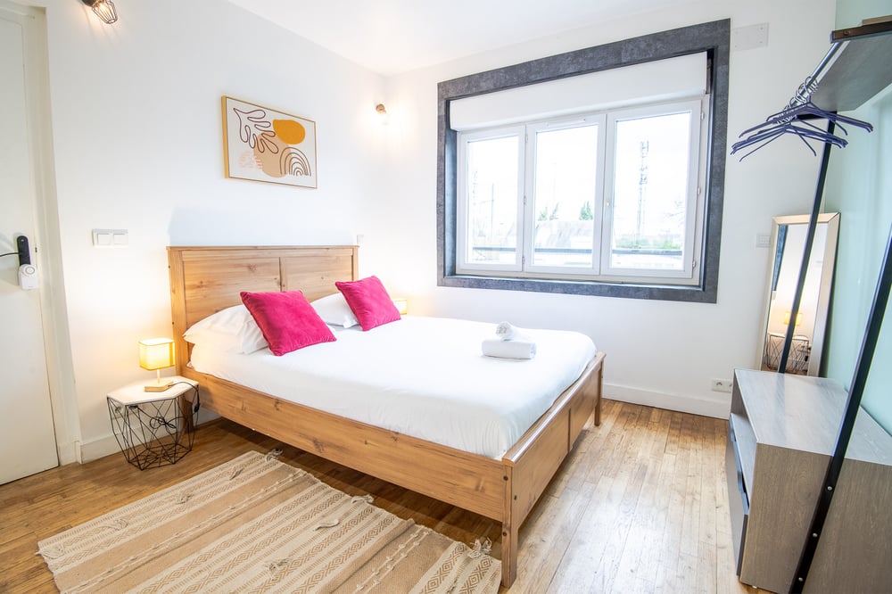 Parking is free on the street and access is very easy from the motorways. From Tours train station, it is 1.8 kilometres or about twenty minutes walk. Public transport is also within reach to get around without constraints. Are you coming by bike? It is possible to leave them in the entrance hall of the building. The apartment is located on the 1st floor without a lift.