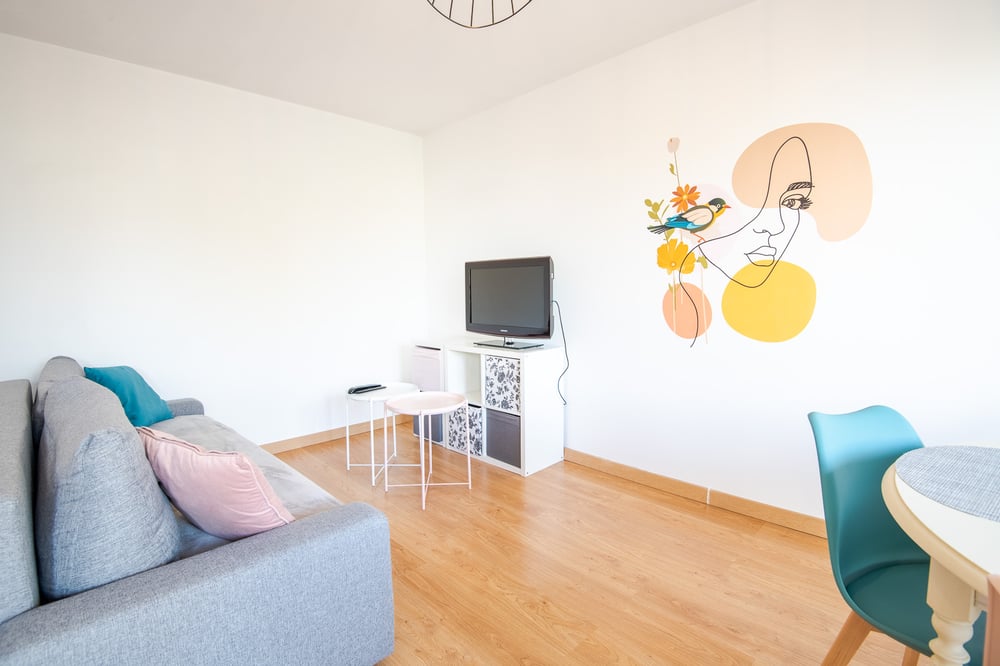 Whether you're coming for business or pleasure, you'll feel right at home in this beautiful apartment suitable for 4 people. It offers a warm and welcoming space, decorated in pastel colors to create a pleasant, cozy atmosphere. You'll find a spacious living room opening onto the kitchen to reinforce the convivial aspect of the place. You can relax on the sofa while watching TV or taking advantage of the Wifi connection. In the evening, the sofa can be converted into a double bed for a good night's sleep. The kitchen is fully equipped for home-style cooking (oven, hob, French press coffee maker, etc.). Next comes the sleeping area, with a bedroom featuring a comfortable double bed, and a bathroom with bathtub. An ideal place to relax after a day of sightseeing or work! For sunny days, a small balcony is at your disposal :) The apartment is located in a pleasant, quiet neighborhood, close to all amenities. It's also well served by public transport, so you can easily explore the region. For your comfort, everything is included in the cleaning fee, and bed linen and towels are provided. So all you need to do when you arrive is put your luggage down. Arrivals are autonomous. Keys are to be collected from a box close to the accommodation and a stone's throw from Tours station. Don't hesitate to book!