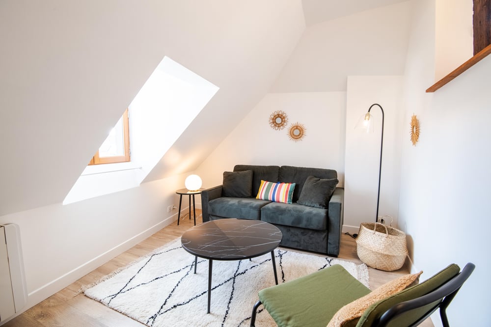 Welcome to this charming apartment in Amboise! Whether you're traveling alone, as a couple, for business, or on vacation, you'll feel perfectly at ease in this 50m2 one-bedroom (T2) apartment, ideally located in the heart of the city of Amboise, just a few minutes' walk from the famous castle. Upon entering, you'll be greeted by a fully equipped kitchen. The kitchen opens into a dining area, creating a friendly atmosphere. The adjoining living room is equipped with a television and high-speed internet access, allowing you to stay connected or unwind after a day of exploring the city. The sofa bed provides the option to create an additional sleeping area if needed. The separate bedroom invites you to rest in a King-size bed, equipped with quality bedding for peaceful nights. The carefully decorated space creates a warm and welcoming atmosphere. The modern shower room and separate toilet complete the high-quality layout of this apartment. We provide you with bed linens and bath towels to make your stay as enjoyable as possible. The privileged location of our accommodation, just steps from Rue Nationale, a lively pedestrian shopping street in the city, will add a special touch to your experience. You can easily explore the local shops, restaurants, and iconic sights of Amboise.