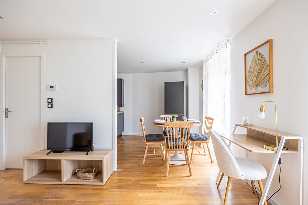 📍 THE LOCATION: Located in Annonay, in the heart of the Auvergne-Rhône-Alpes region, this accommodation is perfect for discovering the cultural and natural richness of the area. Just minutes from the historic center, you can stroll through Place des Cordeliers, visit the Canson and Montgolfier Paper Mill Museum, or admire the panoramic view from the heights of the city. As the birthplace of the Montgolfier brothers, Annonay offers an authentic atmosphere blending history and tradition. Nestled in a quiet neighborhood while remaining close to shops and services, this accommodation also provides quick access to the Monts d’Ardèche, ideal for hiking and outdoor activities. A perfect starting point for combining relaxation, cultural discoveries, and nature getaways. 🏠 THE ACCOMMODATION: The apartment is located on the 3rd floor, without an elevator, and is laid out as follows: ⋆ Welcoming living area, tastefully decorated with a smart TV ⋆ Functional, fully-equipped kitchen (Tassimo coffee machine) ⋆ Cosy bedroom (140 x 190 cm bed) ⋆ Comfortable sofa bed, ideal for 1 adult/child ⋆ Bathroom with bathtub ~ Washing machine available 🛎️ THE SERVICES: ⋆ Self check-in and check-out ~ App to download ⋆ Traveler Support 7 days a week, until 10 pm on weekdays and 9 pm on weekends ⋆ Private, free, and secure Wifi ⋆ Bed linen and towels provided ⋆ Professional cleaning and laundry services ⋆ Welcoming items supplied in limited quantities (condiments, welcome tray, hygiene products) ⋆ Convenient parking nearby: La Valette public parking is a 5-minute walk away ⋆ Additional services available upon request: crib, high chair, and changing mat provided on-site at no extra cost (linens not included)