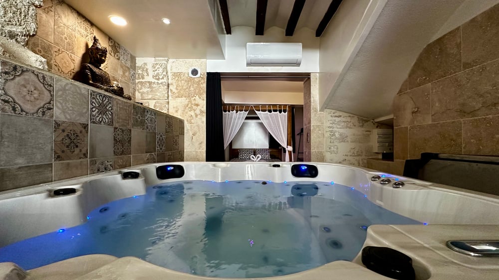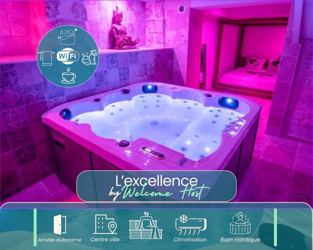 Benefits of accommodation: Spacious and welcoming: with 1 double bed (180x190) and 1 single bed, ideal for a romantic getaway or a stay with friends. Air-conditioning: for cool, comfortable nights, even in summer. right in the center Linen and towels included: Comfort guaranteed throughout your stay. Jacuzzi, hammam and sauna for THE HOTEST evenings, lounges for moments of relaxation and conviviality. Sanitary products supplied: Soap and other essentials at your disposal.