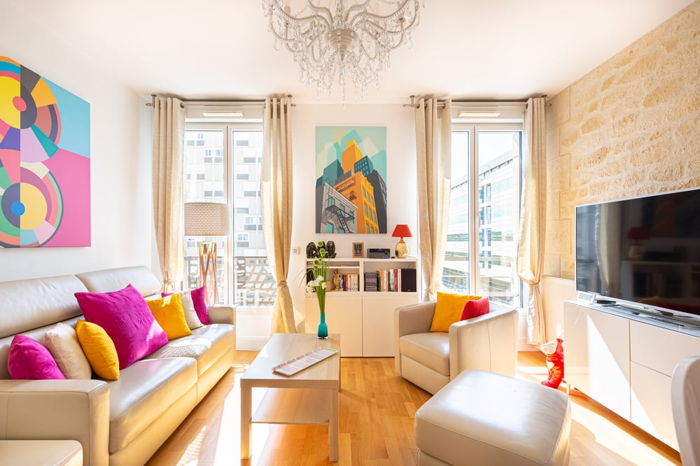 Bienvenido. Mi apartamento ha sido completamente renovado y decorado con gusto. Usted puede disfrutar de una ubicación óptima en el corazón de nuestra hermosa ciudad de Burdeos. La ventaja de este apartamento de lujo es su aparcamiento cubierto y gratuito, una verdadera ventaja en una gran ciudad como Burdeos. Es luminoso, y por la noche, la ciudad se ilumina para ofrecer una vista impresionante desde la quinta planta, donde se encuentra el apartamento (¡con ascensor, no se preocupe!). El impresionante y luminoso salón cuenta con un cómodo sofá cama doble y un televisor perfecto para relajarse por la noche, mientras que la mesa de comedor contigua es ideal para comer en sociedad. Además, podrás disfrutar de Netflix. La cocina dispone de fogones, microondas, horno, cafetera, lavavajillas y frigorífico para preparar fácilmente una sabrosa comida casera. Los utensilios de cocina y menaje se proporcionan para su uso también. El dormitorio dispone de una cama doble con sábanas de buena calidad. El cuarto de baño tiene una ducha a ras de suelo. Y también proporciono toallas limpias ;) El aire acondicionado está disponible durante el clima caluroso, del 15 de junio al 30 de septiembre. Espero que tengas una estancia fantástica.