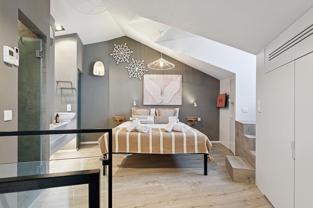 ¡Bienvenido a mi estudio! Este elegante estudio de 40 m² en Braga es el refugio perfecto para familias y amigos que buscan una estancia cómoda y memorable. Situado en la tercera planta y accesible por ascensor, el estudio combina diseño innovador y comodidad. La sala de estar de planta abierta incluye un cómodo sofá-cama doble, una mesa de comedor y un televisor de pantalla ancha, ideal para relajarse por la noche y ponerse al día con sus programas favoritos. La cocina americana contigua está totalmente equipada con todo lo necesario para preparar deliciosas comidas, incluyendo una estufa, horno, microondas, utensilios de cocina y cubiertos. También hay un lavavajillas para facilitar la limpieza, junto con equipo de planchado para mayor comodidad durante estancias más prolongadas. En el entresuelo le espera una cama de matrimonio con ropa de cama de calidad de hotel. El cuarto de baño privado cuenta con todas las comodidades necesarias, como toallas limpias, secador de pelo y artículos de aseo gratuitos. Los dos cuartos de baño contienen todas las comodidades necesarias, incluyendo toallas limpias, secador de pelo y artículos de tocador gratuitos. El estudio siempre se limpia profesionalmente para su comodidad. Disfrute de su estancia.