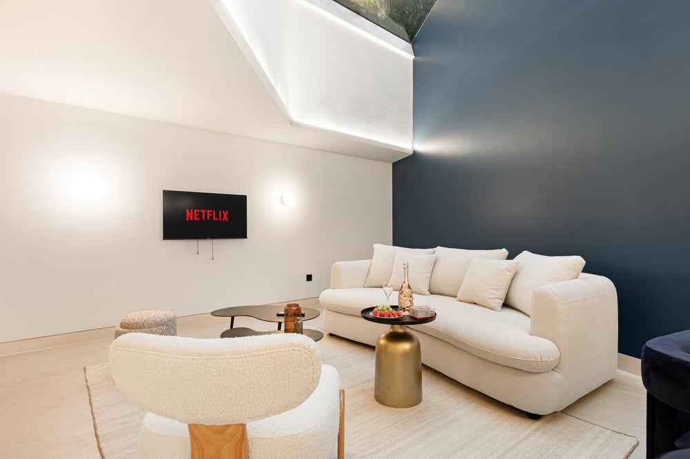The Space – Elegance and Design in the Service of Comfort From the moment you step in, Cèdre Bleu charms with its warm and refined atmosphere. Designed like a boutique hotel suite, every element has been carefully selected to blend aesthetics and well-being. The living room is bright and serene, enhanced by noble textures, a high-quality sofa, modern decor, and a cozy, soothing ambiance. The first bedroom is spacious and features a queen-size bed with a graphic headboard, a designer mirror, and minimalist pendant lighting. The second bedroom offers a soft, intimate atmosphere, with elegant storage space, natural tones, and premium bedding. The glass-paneled dressing room is a true highlight: both functional and stylish, it adds a luxurious hotel touch to the apartment. The bathroom is a design gem: a large walk-in shower, a contemporary vanity, matte black fixtures, and a round backlit mirror that creates a soft, enveloping light. Materials such as light wood, black metal, and soft textiles come together in a chic, calming, and distinctly modern setting. Every room has been designed to offer an elegant, practical, and restful space where you instantly feel at home.