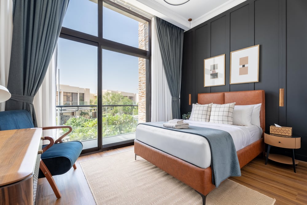 Step inside this 474 sqm villa, where a California-cool design meets the prestigious lifestyle of the Trump International Golf Club. The heart of the home is the expansive open-plan living area. A gourmet kitchen flows into a sun-drenched dining space, while the lounge features an 85-inch smart TV with surround sound. Slide open the glass doors to your personal oasis: a landscaped garden, a sparkling private pool (with safety cover), a shaded patio, and a BBQ station for al fresco dining. As evening falls, enjoy one of Dubai’s most unique experiences: night golf on the 9-hole, floodlit PAR 3 course at the Trump International Golf Club. The 30,000 sq ft clubhouse, with its infinity pool, restaurants (Prato, 71 Sports Bar), and Dreamworks Spa, is your neighbourhood social hub. The villa features 4 bedrooms (king, queen, 2 doubles) plus a dedicated 5th Bedroom / Staff Suite with a sofa bed and full en-suite bathroom. Three of the bedrooms also offer a comfortable, ergonomic workspace with a desk and chair, perfect for remote work or study. A fully equipped home gym and 7 bathrooms (5 en-suite) complete this exceptional home.