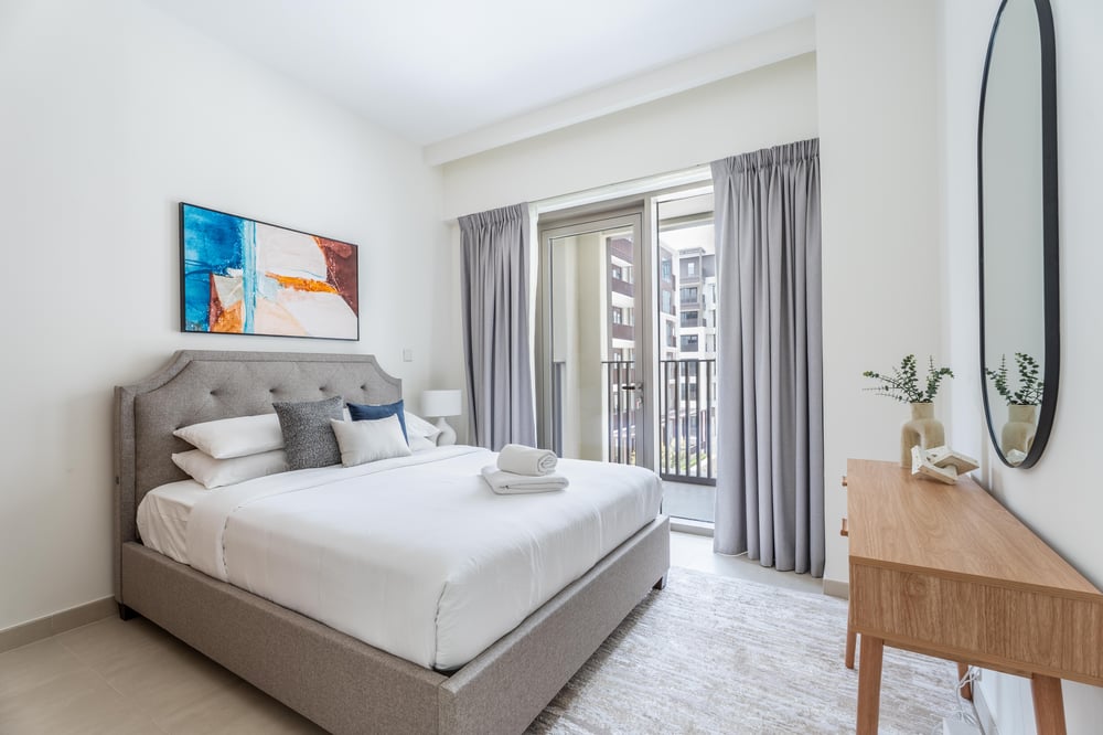 Welcome! This lovely 100m² apartment is located on the 3rd floor of a newly constructed building, with convenient lift access. Designed for comfort and functionality, the living room features a cosy single sofa bed, a TV for your favourite shows, and a dining table—perfect for relaxing or enjoying meals with your group. Step outside and unwind on the private balcony. The modern kitchen comes fully equipped with quality appliances, essential cookware, and crockery to meet all your culinary needs. A washer is also provided for your laundry convenience. The first bedroom boasts a king-size bed, while the second includes a queen-size bed. Both rooms are tastefully decorated and come with complimentary hotel-quality linens to ensure a restful night's sleep. Two well-appointed bathrooms offer everything you need to freshen up, including fresh towels and toiletries. As a guest, you’ll also have access to the building’s shared gym and swimming pool, adding even more comfort and leisure to your stay. The apartment is always professionally cleaned for your comfort. Daily housekeeping services are available upon request for an additional fee. Please note, Dubai is a vibrant and ever-growing city, and with these developments come occasional construction in the apartment building or surrounding area. While this may bring some urban sounds or affect the views from the property, it is all part of the city’s dynamic growth. We truly appreciate your understanding and look forward to hosting you. Enjoy your stay!