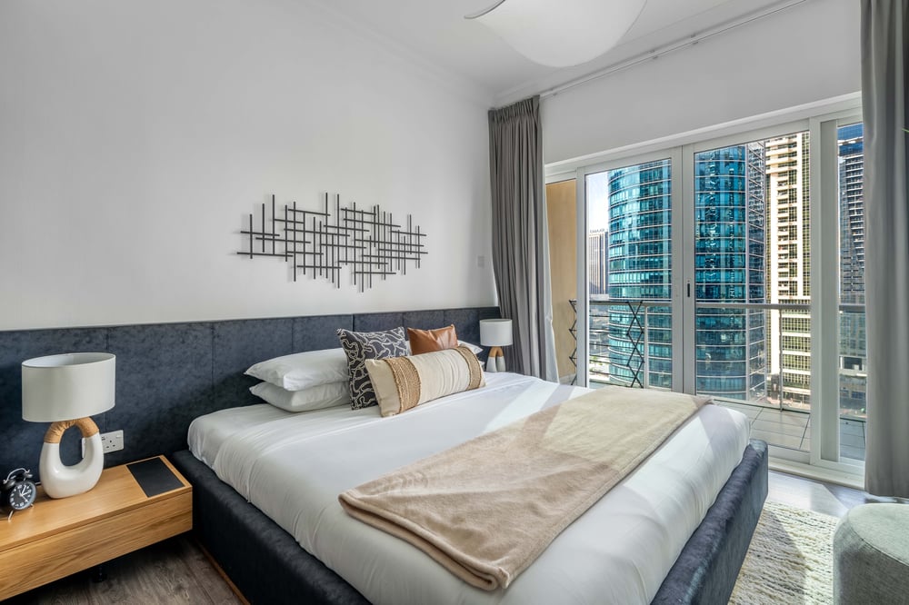 ¡Bienvenido a mi casa! Esta vivienda de 131m2, situada en la 12ª planta con ascensor, goza de una ubicación céntrica para disfrutar de todo lo que ofrece la ciudad. Tiene capacidad para tres personas y dispone de múltiples ventanas para que los huéspedes puedan disfrutar de la luz del sol y de las vistas al exterior. El salón está magníficamente amueblado y cuidado. Incluye un cómodo sofá cama donde relajarse tras un largo día explorando la ciudad, un televisor donde ver todos sus programas favoritos y una mesa de comedor que puede convertirse en mesa de billar. La zona incluye ventanas del suelo al techo que dan a un balcón amueblado donde podrá relajarse plenamente y disfrutar de las impresionantes vistas del lago JLT y sus rascacielos. La cocina americana incluye electrodomésticos, utensilios de cocina esenciales y vajilla para satisfacer las necesidades culinarias. Una lavadora está disponible para sus necesidades de lavandería. El dormitorio cuenta con una cómoda cama tamaño king con ropa de cama de calidad de hotel para garantizar una buena noche de sueño y múltiples espacios de almacenamiento. Los 1,5 cuartos de baño tienen todas las comodidades que necesita para refrescarse, incluyendo toallas limpias y artículos de tocador para su comodidad. El apartamento siempre se limpia profesionalmente para su comodidad. El servicio de limpieza diario está disponible bajo petición y por un suplemento. Disfrute de su estancia.