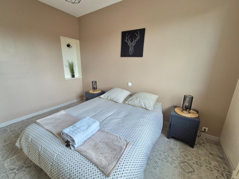 -> Accommodation located in Les Herbiers. -> Can accommodate up to 8 guests. It consists of: *** Inside *** -> A dining area, fully fitted and equipped kitchen (hob, extractor hood, microwave, oven, fridge, dishwasher, toaster, Nespresso coffee machine, kettle…). Everything you need to cook is available. A welcome kit is provided including tea, coffee, sugar, and biscuits. -> A living room with a sofa, a coffee table, and a TV! WIFI is available. -> A separate toilet. -> A bathroom with a mirror. A bathroom kit is provided with soap, shower gel, and shampoo. -> Three bedrooms: the first one with 4 single beds (90x200 cm), the second one with a double bed (140x200 cm), and the third one also with a double bed (140x200 cm). *** Outside *** -> A private area with a garden table and a grassy space to have fun! -> A barbecue available in the summer (charcoal not provided). *** ALL bed linen as well as bath and hand towels are included in the price – no extra fees! *** -> Free parking spaces in front of the house. *** A key box is available for fully autonomous check-in. *** -> Check-in from 5 PM, check-out by 10 AM. -> Pets are not allowed. -> A security deposit will be requested a few days before your arrival, depending on the booking platform. This mandatory step ensures a smooth stay.
