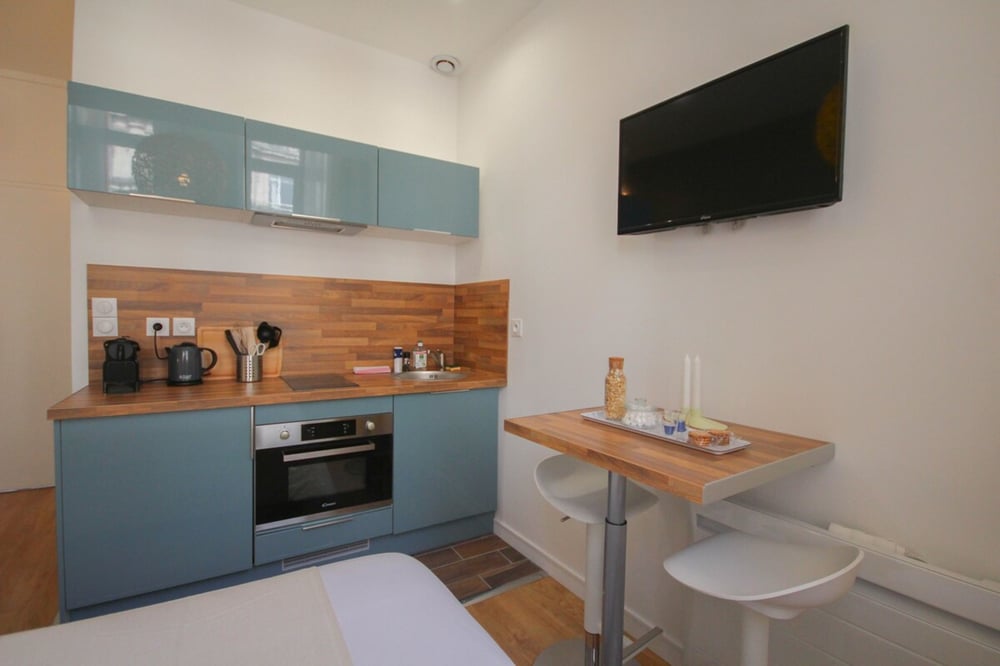 The apartment is located on the second floor of a typical Lille building with no elevator. It's fully equipped for a pleasant stay, with a fully-equipped kitchen and dining area, a comfortable double bed, and a bathroom with shower and toilet. The neighborhood is quite lively, so for light sleepers, we advise you to bring your earplugs! The accommodation will be carefully prepared for your arrival: Professional cleaning service + laundry service for household linen. All linen is provided: bed linen, towels, bath mats and tea towels. The kitchen is equipped with all utensils and dishes for lunch and dinner. Entertainment available via TV: Molotov TV, Prime Video! You'll love this apartment for its facilities and its proximity to shops, restaurants and transport in Lille!
