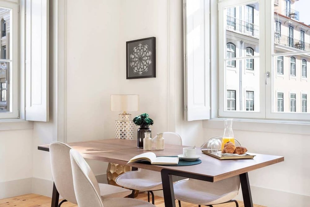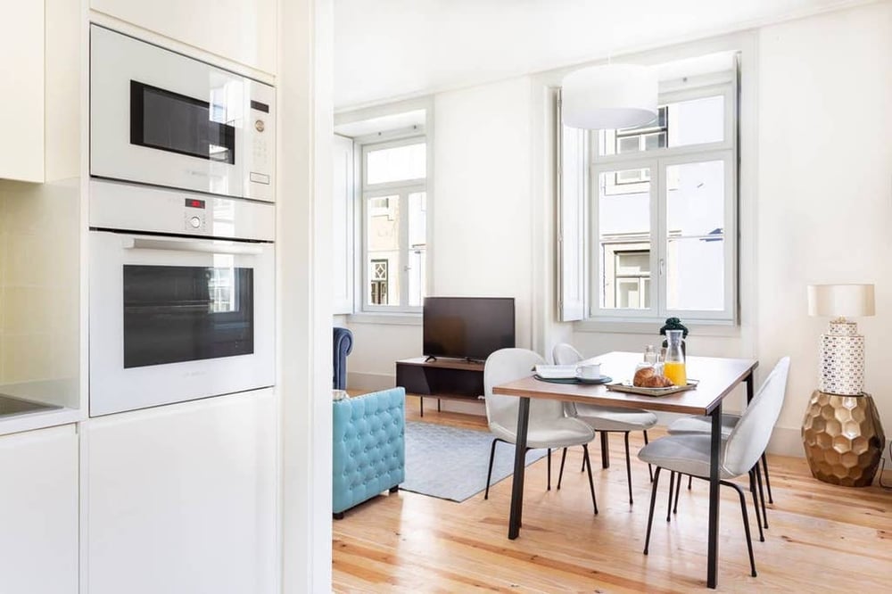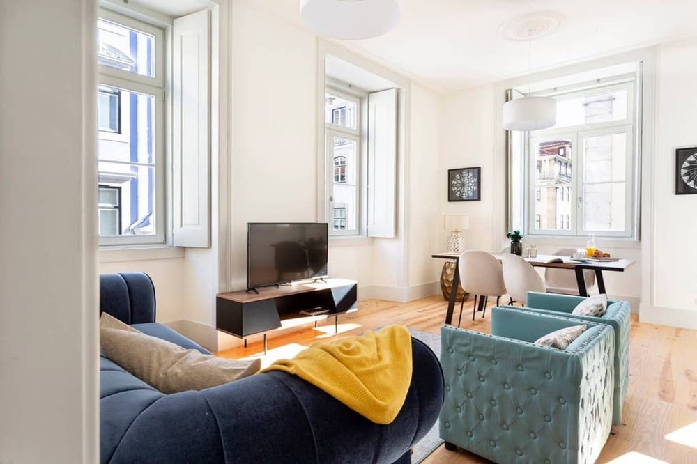 Welcome! This apartment is located on the 2nd floor, with elevator access. Beautifully furnished and tastefully decorated, this stunning 70 m² (753 ft²) apartment is right in the heart of Lisbon—steps away from the city's most famous attractions, including the Arco da Rua Augusta, Carmo Convent, Money Museum, Lisbon Cathedral, and Castelo de S. Jorge. The Rossio subway station is only a 2-minute walk away, allowing guests to explore Lisbon and beyond easily. This apartment features an open living, dining, and kitchen area, offering a cosy space to relax after a day of sightseeing. The living room has a comfortable sofa and a flat-screen TV, perfect for unwinding or enjoying a quiet night. The kitchen has essential cookware and cutlery for home-cooked meals, including a refrigerator, oven, stovetop, microwave, toaster, electric kettle, and dishwasher. The apartment also comes with a washing machine for your convenience. The two bedrooms are designed for comfort—one with a double bed and the other with two single beds—and they are complete with complimentary hotel-quality linens and ample storage space. The two bathrooms contain everything you'll need: a shower or bathtub, toilet, wash basin, hairdryer, and complimentary toiletries. Towels are also provided for your convenience. Additional features include complimentary Wi-Fi, air conditioning, and stylish wooden floors throughout the apartment. It's a great place to relax after a long day out and about. Perfectly equipped for all your holiday needs, the home is always professionally cleaned for your comfort. Enjoy your stay!