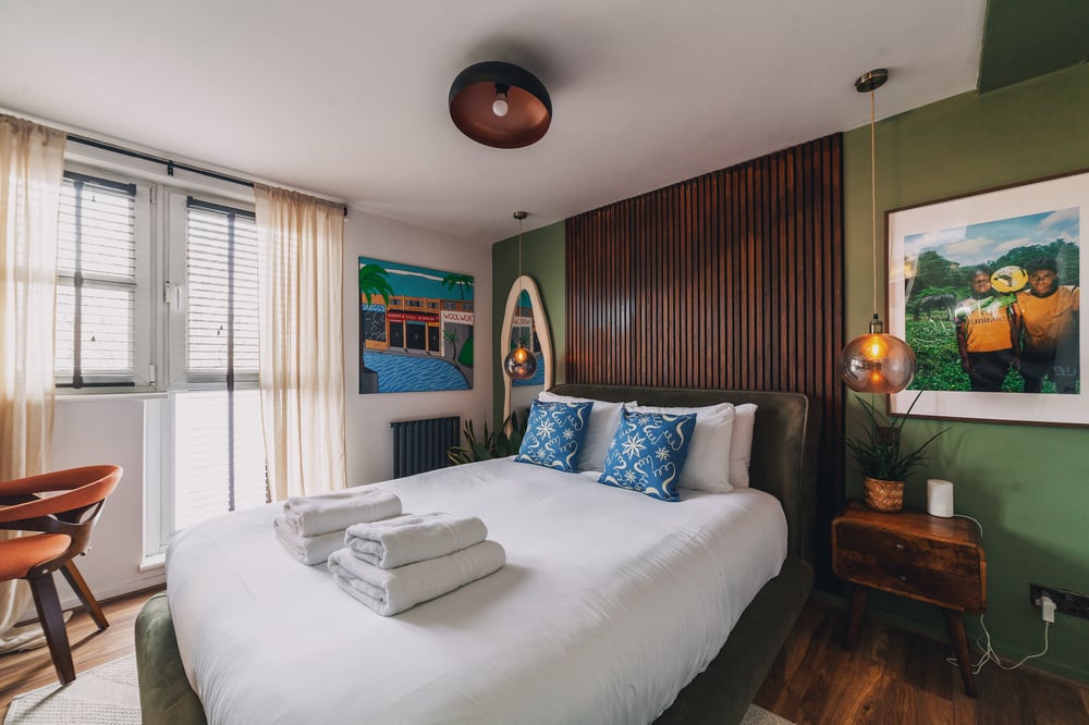 Experience a unique and stylish stay in this carefully designed mid-century Memphis-style hideout maisonette in central London. Perfect for up to three guests, this top-floor apartment offers peace and quiet, a surprising escape from the bustling city, despite being within strolling distance of central London's attractions. Located on the first floor, this maisonette features a comfortable bedroom with a king-size bed and a double sofa bed, ideal for flexible sleeping arrangements. The well-appointed bathroom includes a shower. A dedicated dining area provides space for meals, while the inviting living area boasts a spacious sofa, a fifty-inch Phillips Ambilight smart TV, a PS5 with two controllers for entertainment, and Apple HomePod speakers for immersive sound. The modern kitchen is equipped with everything you need, including a brand new microwave, toaster, kettle and a new Nespresso Vertuo machine, plus a washing machine for your convenience. This unique maisonette is nestled in the vibrant Caledonian Road neighbourhood, a dynamic area offering a mix of local charm and convenient access to central London. Explore the diverse range of shops, restaurants, and pubs along Caledonian Road, or venture a little further to discover the rich history and cultural attractions of nearby Islington and King's Cross. Enjoy a leisurely walk along the Regent's Canal, visit the bustling markets, or simply soak in the atmosphere of this lively part of the city. For everyday essentials, you'll find a Sainsbury's, Tesco, Nisa Local and a health food organic store just a two-minute walk away, and several gyms are within a five-minute walk.