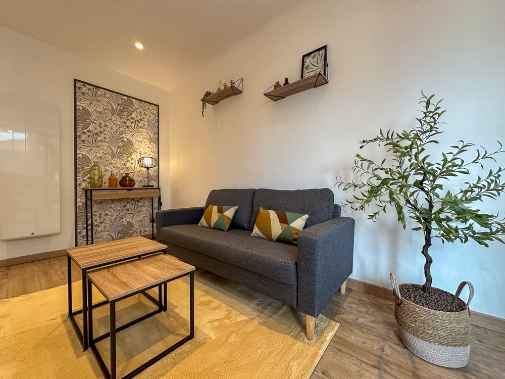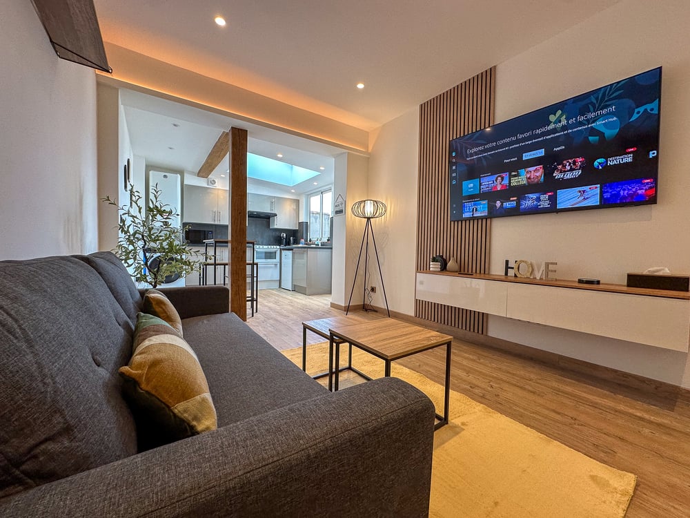 🏡 Our accommodation sleeps up to 2 travellers. 🛏️ One bedroom with double bed (160x200), dressing room, bathroom with shower and washing machine dryer. 🛋️ Enjoy a spacious and bright living room, with a comfortable sofa, a large flat-screen TV and LED lighting for a cosy atmosphere in the evenings. Wi-Fi to keep you connected. 🍽️Cuisine Fully equipped (Nespresso coffee machine, dishwasher, microwave, oven, toaster) with modern appliances, ready to prepare your meals just like at home. ✔️ Linen provided (sheets and towels). 🔑 Autonomous arrival and departure with digicode and key box. 🅿️ Free parking in the street in front of the accommodation. ⚠️ The accommodation is non-smoking 🚭 and pets 🐾 are not allowed. ⚠️ The flat is located above a shop, which can be noisy early in the morning. You will find all further information when you make your booking.