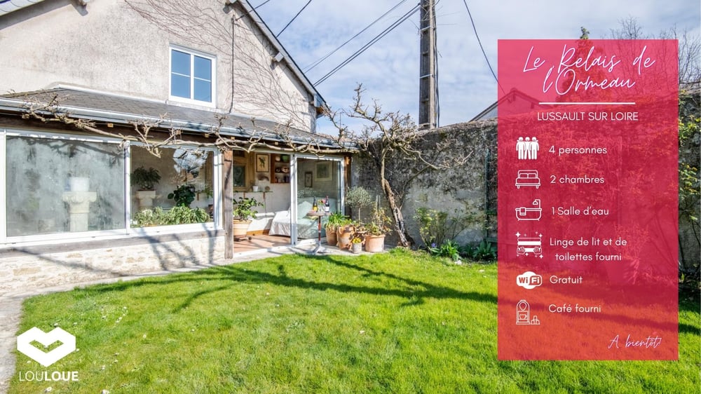 Discover Le Relais de l'Ormeau, a superb little gîte for 4 people, located in Lussault sur Loire, in a peaceful setting close to the forest and Touraine winegrowing estates!