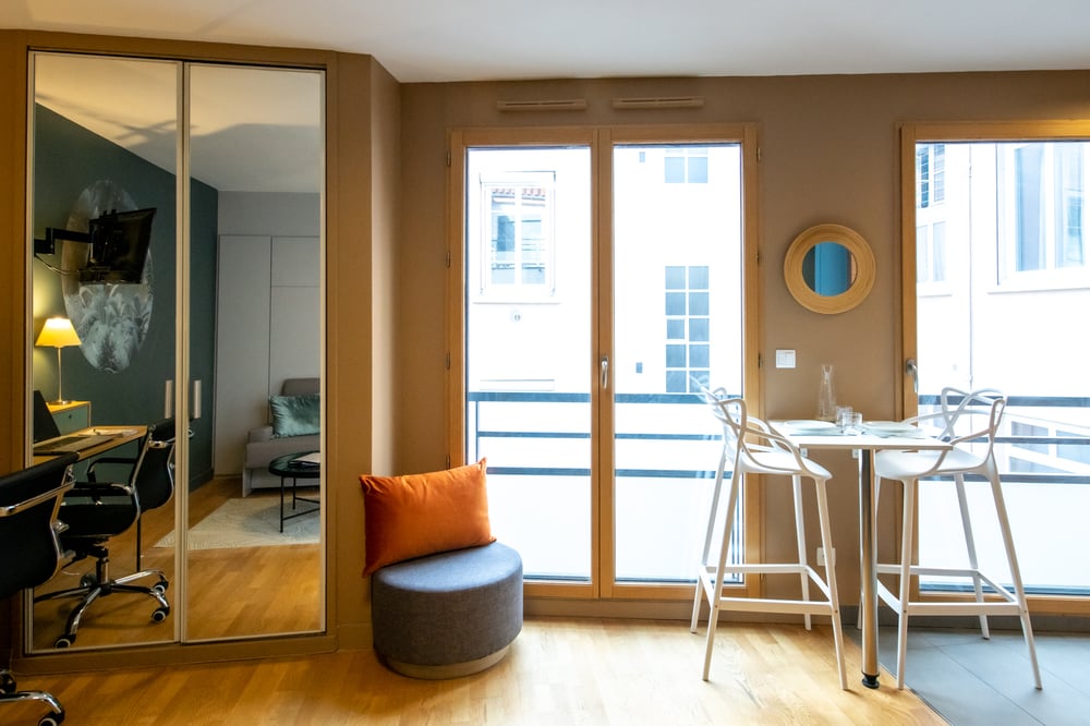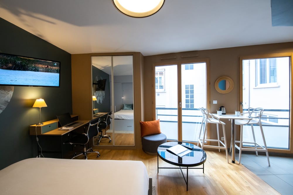 🏡 Accommodation You will stay in this bright and modern studio apartment located in the heart of the authentic and lively Croix-Rousse district, in a recent and very secure building. Less than 600 meters from the Hénon metro station, you will enjoy an ideal location for exploring Lyon, working in comfortable conditions, or relaxing. The apartment has reversible air conditioning, high-speed fiber Wi-Fi, and a layout designed to optimize space and everyday comfort. Rated 3 stars and official partner of the Lyon Tourist Office. 🛋️ Living space The main room is equipped with a comfortable 140×190 foldaway double bed, a sofa, an HD TV, and a desk that is ideal for working in peace. The apartment is bright and airy, with modern and functional furnishings, as well as reversible air conditioning for optimal comfort in all seasons. 🍳 Modern, fully equipped kitchen The kitchen has a stove, refrigerator, microwave, dishwasher, kettle, dishes, utensils, a full set of cookware, and a Nespresso coffee machine, so you can cook just like at home. 🛏️ Sleeping area The 140×190 double bed is foldable, freeing up space during the day while ensuring real comfort at night. A practical and cozy solution in the heart of Croix-Rousse. 🛁 Bathroom A modern bathroom with shower is at your disposal. Sheets and towels are provided. We provide soap and shower gel from GREENLAB, an eco-friendly brand. 🎁 A few welcome gifts at your disposal A small selection of complimentary items is provided to help you get your stay off to a good start: pasta, rice, and basic essentials. A few coffee and tea pods (welcome gift only). You will also find a comprehensive Traveler's Guide with useful addresses, instructions, Wi-Fi, tips, and more. 🔑 Check-in & check-out 100% independent check-in from 3 p.m. thanks to a digital code on the apartment door. Check-out until 11 a.m. at the latest. ✨ Our extras Late check-out until 1 p.m.: +18E (on request, the day before at the latest) ⚠️ Rules As mentioned in the listing, parties and any noisy events (loud music, etc.) that could disturb the neighborhood are prohibited. Smoking is also prohibited inside. Any violation will result in a financial penalty. Thank you for your understanding 😊