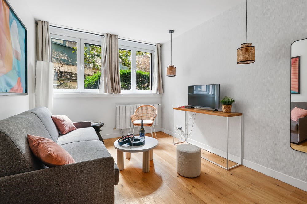 This suite has been designed to offer a comfortable and functional stay in a pleasant environment. The living room features a bright lounge area with a double sofa bed, coffee table, and television, as well as a cozy dining area. It is the ideal place to relax after a day in Paris or enjoy a simple dinner together. The modern, fully equipped open-plan kitchen makes it easy to cook on site. It features a stove, practical storage space, and a washing machine, which is a real plus for stays of several days. The master bedroom has a comfortable double bed and a private bathroom, offering peace and privacy. The toilet is located in a separate room, independent of the bathroom, which is a welcome convenience when staying with others. Additional amenities: the apartment has a washer-dryer, Wi-Fi, and a towel kit provided for each guest. This allows you to travel light and fully enjoy your stay, especially if you are staying for several days. Located on the 2nd floor of a secure building with an elevator, the apartment combines tranquility and a premium location in one of the most elegant neighborhoods in Paris.