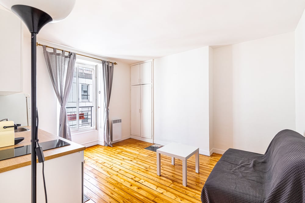 Bienvenido a mi apartamento. Moderno y decorado con gusto, este bonito apartamento de 32 m² está cerca de varios lugares de interés de París, como la Basílica del Sacré-Cœur de Montmartre. Está situado en la 3ª planta de un edificio sin ascensor. Este apartamento está diseñado con un plan de piso abierto. El salón cuenta con un cómodo sofá para descansar y una pequeña mesa. Tiene una gran ventana que deja entrar la luz natural. La cocina está totalmente equipada con los utensilios de cocina y cubiertos esenciales que necesitará para cocinar deliciosas comidas. El dormitorio tiene una cama doble con ropa de cama de calidad de hotel para el máximo confort. El cuarto de baño cuenta con todas las comodidades necesarias, incluidas toallas limpias y artículos de aseo gratuitos. El apartamento siempre se limpia profesionalmente para su comodidad. Disfrute de su estancia.