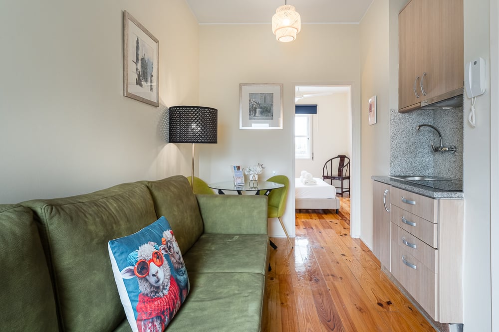 ¡Bienvenido a mi casa! Un encantador apartamento de 1 dormitorio, viene con una bonita zona de estar, amueblada con un cómodo sofá, TV de pantalla plana y una mesa y asientos para 2 personas. El dormitorio está equipado con una cómoda cama doble, que se hará con ropa de hotel de calidad, a su llegada, un gran espejo y ventilador de techo. Hay una cocina americana muy bien equipada, con los utensilios de cocina y cubiertos esenciales que usted necesitará para preparar una deliciosa comida, incluyendo microondas, cafetera y nevera. Tenga en cuenta que la cocina no está disponible en este momento. El cuarto de baño dispone de ducha a ras de suelo, inodoro, lavabo y espejo: toallas limpias y artículos de aseo gratuitos, para tu comodidad. Para su salud y seguridad, el piso ha sido limpiado profesionalmente y desinfectado estratégicamente. ¡Disfrute de su estancia! Nota: El cuarto de baño es más bien pequeño. Sin embargo, creo que estos aspectos contribuyen al ambiente acogedor e íntimo del piso y estoy seguro de que lo encontrarás encantador a pesar de estas consideraciones. Es posible que haya algo de ruido, ya que el piso está en la zona de bares del centro, cerca de la Ribeira. El piso está en la 4ª planta, sin ascensor.