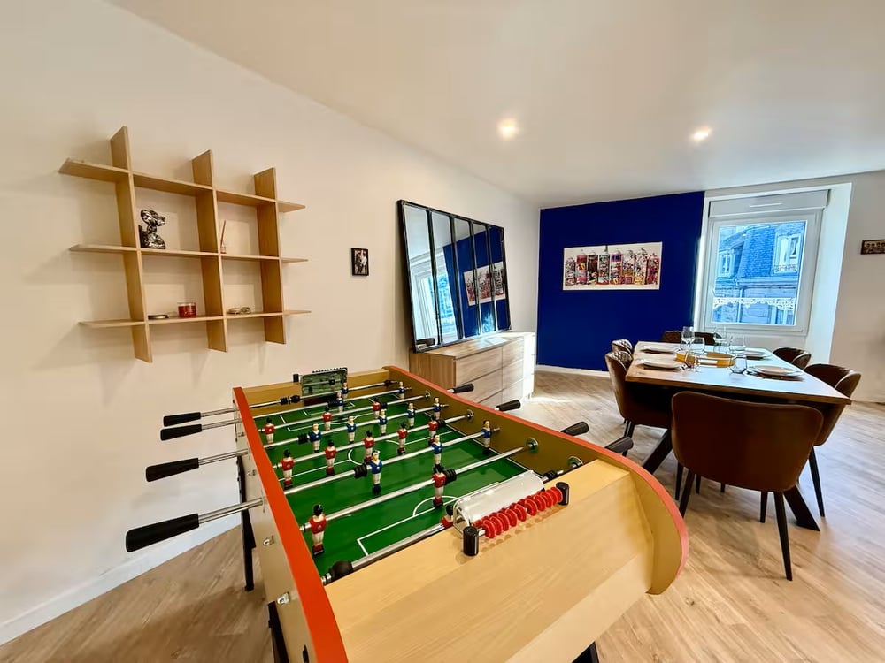 This recently renovated apartment perfectly combines old-world elegance with modern comfort. Ideally located on the third floor of a quiet and secure building, our bright and spacious apartment invites you to relax. Whether you're traveling with friends, family, or on business, Le Cœur de Ville is the perfect location in the heart of Saint-Brieuc. The apartment features two bedrooms, each with 140 and 160 cm beds, offering all the amenities you need for a pleasant stay. The Accommodation This spacious two-bedroom apartment, ideally located in a quiet neighborhood, is fully equipped to ensure your optimal comfort: Wi-Fi, TV, washer-dryer, dishwasher, oven, hotplates, refrigerator, microwave, coffee maker, kettle, and all the kitchen utensils you'll need. We also provide linens and some supplies for your arrival. A spacious, bright, and beautifully decorated setting, with all the character of a historic site, awaits you for an unforgettable stay.