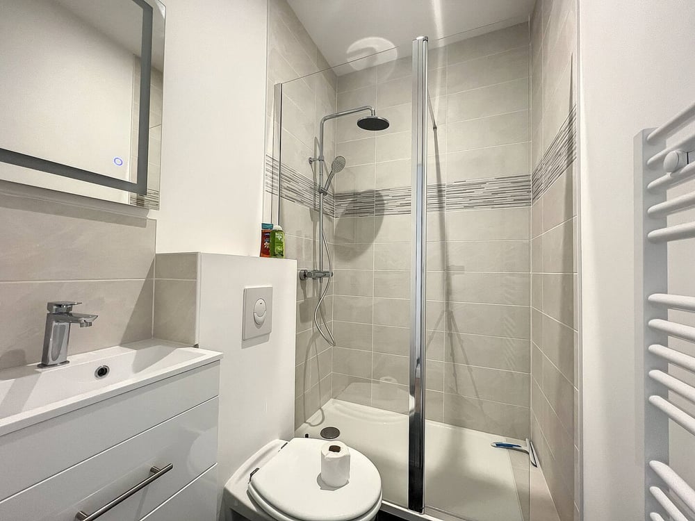 Located on the first floor of a newly renovated building, this accommodation includes: A very bright room with a 140x190 bed, a table + chair, a connected TV, and a wardrobe. A kitchenette equipped with induction cooktops, a refrigerator (with a freezer compartment), a microwave, a coffee maker, and a kettle. Dolce Gusto coffee maker (welcome pack with 2 capsules + 2 tea bags). A bathroom with a shower, vanity unit, and toilet. A hairdryer, ironing board, and iron are available in the accommodation. Free parking spaces are available on the street in front of the property. This apartment has a maximum sleeping capacity of 2 people. Therefore, it is prohibited to host more people than this maximum capacity. The accommodation offers free Wi-Fi access. Linen is provided. We currently have a hole in the wall above the radiator. We are taking the necessary steps to repair it as soon as possible. Of course, the beds will be made upon your arrival. We also provide one towel per person and one kitchen towel. If you are staying for a longer period, feel free to bring your own bath linen. We do not provide facecloths or additional towels.