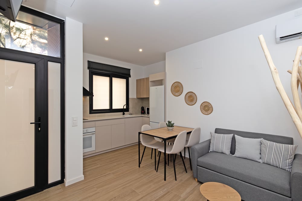 Bienvenido/a a mi estudio! Este encantador estudio de 40 m² esta recientemente reformado, cerca de atracciones populares, tiendas, supermercados y una gran variedad de restaurantes con deliciosas opciones gastronómicas. También tiene facil acceso a la playa. Su diseño de planta abierta combina perfectamente las zonas de estar, comedor, descanso y cocina. Encontrarás una cómoda cama doble con ropa de cama, un sofá cama individual o con capacidad para 2 niños, una televisión para disfrutar de tus programas favoritos y una mesa de comedor ideal para compartir comidas. La cocina americana está totalmente equipada con los utensilios y menaje esenciales, incluyendo una placa eléctrica y una cafetera, para que puedas preparar fácilmente tus platos favoritos. El baño está provisto de toallas limpias y artículos de aseo gratuitos para tu comodidad. El estudio se limpia profesionalmente antes de cada estancia y se encuentra en la planta baja del edificio. ¡Disfruta de tu estancia!