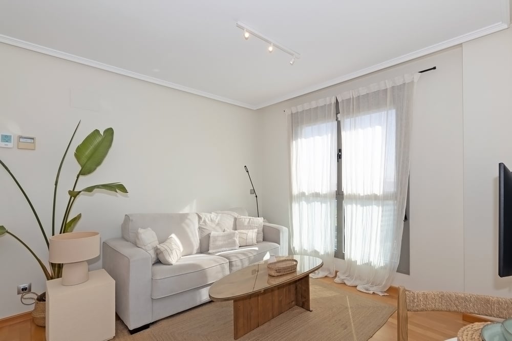 Moderno apartamento de temporada,con dos habitaciones y con garaje, piscina y terraza con hermosas vistas. Se encuentra muy cerca de la Ciudad de las Artes y las Ciencias y la playa. Tiene a poca distancia el tranvía que conecta con el centro y distintos puntos de la ciudad. Ideal para parejas que buscan comodidad y una ubicación perfecta para moverse por Valencia.