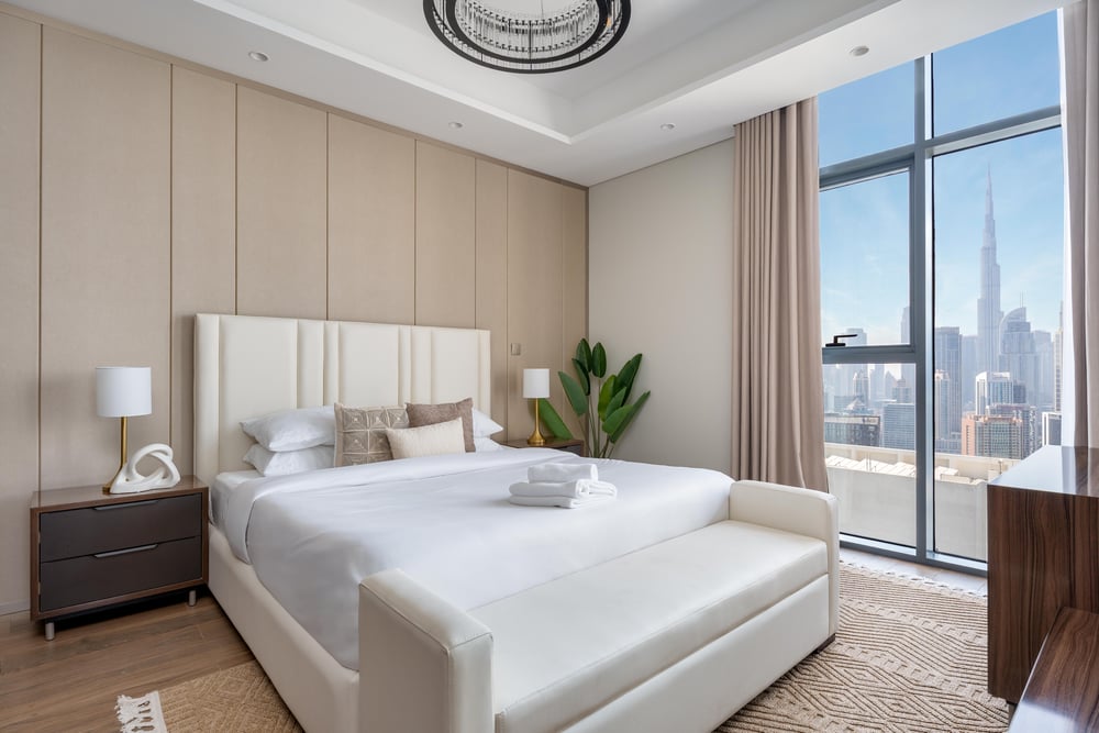 Welcome! This lovely 71m2 apartment is located on the 34th floor, accessible by lift. The living room is comfortably furnished with a sitting area, a TV for enjoying your favourite shows, and a dining table, making it an ideal space to unwind and spend quality time with your group. The unit features a private balcony offering breathtaking views of the iconic Burj Khalifa, the Canal and the stunning Dubai skyline. The kitchen includes appliances as well as essential cookware and crockery that will fulfil any of your culinary requirements. There is a washer available for your laundry needs. The bedroom contains a comfortable king-size bed with hotel-quality linens to ensure a good night's sleep and multiple storage spaces. The 1.5 bathrooms have all the amenities you will need to freshen up, including fresh towels and toiletries for your convenience. The apartment is always professionally cleaned for your comfort. Daily housekeeping services are available upon request for an additional fee. Please note, Dubai is a vibrant and ever-growing city, and with these developments come occasional construction in the apartment building or surrounding area. While this may bring some urban sounds or affect the views from the property, it is all part of the city’s dynamic growth. We truly appreciate your understanding and look forward to hosting you. Enjoy your stay!