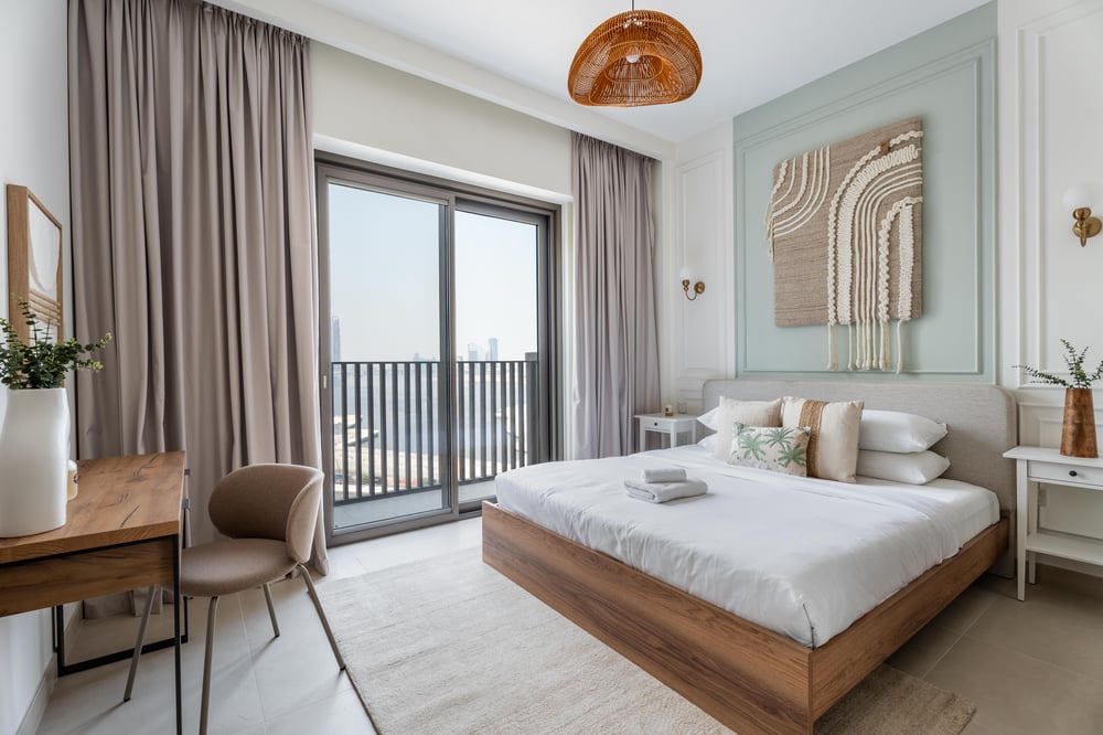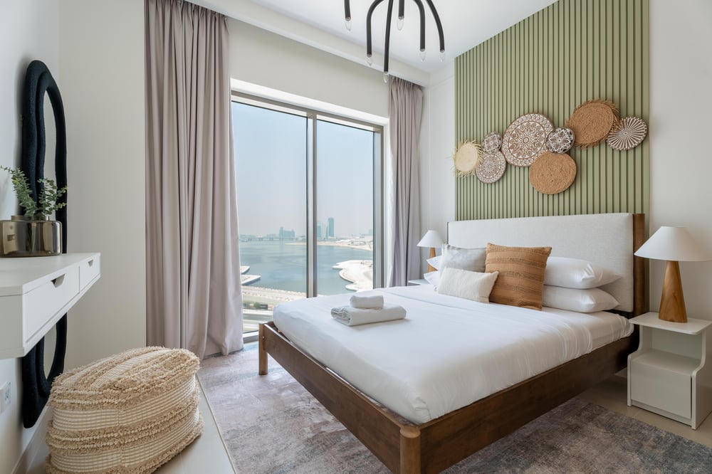 Welcome! This elegant open-plan living space seamlessly combines the kitchen, dining, and lounge areas, creating a warm and welcoming atmosphere. The living room features chic décor, a comfortable sofa bed, a large smart TV and large windows that fill the space with natural light. Sliding doors open to a private balcony, offering a lovely spot to relax outdoors. The modern kitchen is fully equipped with high-end appliances, while the dining area, set with a stylish table for six, is perfect for hosting meals with family or friends. The first bedroom is equipped with a king-size bed and the second with a queen-size bed. Both bedrooms are elegantly decorated and the beds come with complimentary hotel-quality linens. The two bathrooms have all the amenities you will need to freshen up, including fresh towels and toiletries for your convenience. The apartment is always professionally cleaned for your comfort. Daily housekeeping services are available upon request for an additional fee. Please note, Dubai is a vibrant and ever-growing city, and with these developments come occasional construction in the apartment building or surrounding area. While this may bring some urban sounds or affect the views from the property, it is all part of the city’s dynamic growth. We truly appreciate your understanding and look forward to hosting you. Kindly be aware that construction work will be ongoing until October 16th. Enjoy your stay!