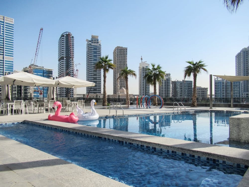 Bienvenue chez moi ! Ce superbe studio de 38 m², situé au 4ème étage et accessible par ascenseur, est conçu pour offrir un espace de vie et de repos ouvert. Il est élégamment meublé et bien entretenu et dispose d'un fauteuil, d'une télévision pour vos émissions préférées et d'un lit king-size confortable avec des draps de qualité hôtelière pour une nuit de sommeil réparatrice. Sortez sur le balcon, meublé de sièges parfaits pour savourer votre café du matin ou un verre de vin le soir. La cuisine moderne est équipée d'appareils électroménagers, d'ustensiles de cuisine et de couverts pour répondre à tous vos besoins culinaires. De plus, un lave-linge est disponible pour votre linge. La salle de bains dispose de tous les équipements dont vous aurez besoin pour vous rafraîchir, y compris des serviettes et des articles de toilette pour votre confort. L'appartement est toujours nettoyé par des professionnels pour votre confort. Un service de ménage quotidien est disponible sur demande, moyennant un supplément. Veuillez noter que la piscine sur le toit est fermée, mais que celle du rez-de-chaussée est ouverte. Nous vous prions de nous excuser pour la gêne occasionnée et vous remercions de votre compréhension. Veuillez noter que Dubaï est une ville dynamique et en pleine expansion, et que ces développements s'accompagnent parfois de travaux de construction dans l'immeuble ou ses environs. Bien que cela puisse entraîner certains bruits urbains ou affecter la vue depuis la propriété, cela fait partie intégrante de la croissance dynamique de la ville. Nous vous remercions sincèrement de votre compréhension et nous réjouissons de vous accueillir. Nous vous souhaitons un bon séjour !
