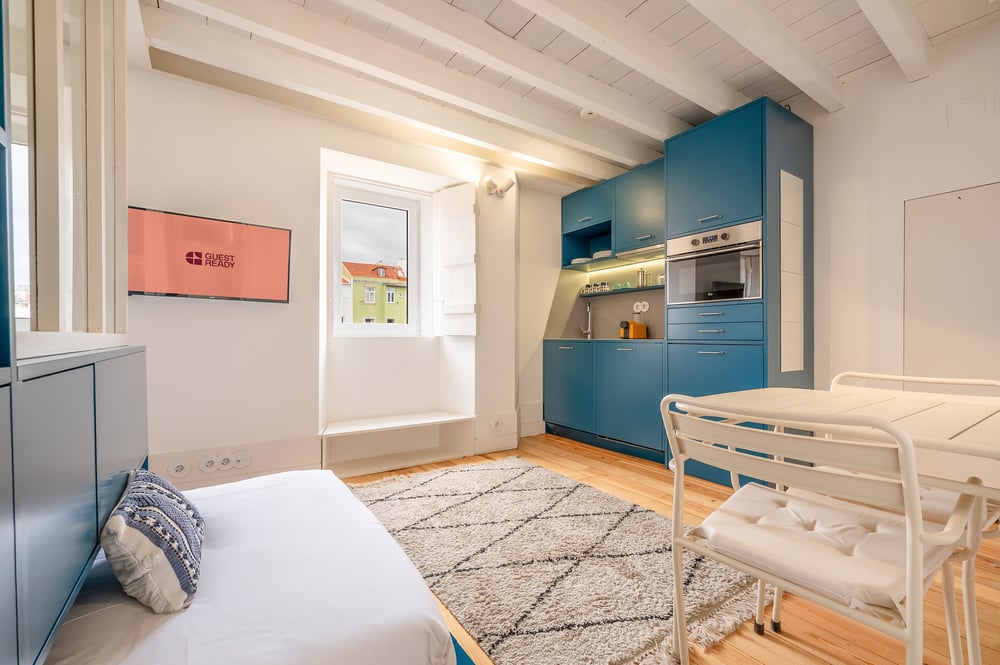 Bienvenue dans mon studio ! Ce charmant studio de 26 m² à Lisbonne est la retraite idéale pour les clients qui recherchent le confort, la commodité et un séjour mémorable. La salle de séjour ouverte comprend un lit simple polyvalent qui se transforme en canapé, une télévision pour vos émissions préférées et une table à manger parfaite pour prendre des repas ou travailler à distance. La chambre à coucher adjacente est équipée d'un lit double en peluche, revêtu de draps de qualité hôtelière, pour des nuits reposantes. Vous y trouverez également de nombreux rangements pour vos affaires, ce qui rendra vos longs séjours plus confortables. Bien qu'il n'y ait pas de mur ou de porte qui les sépare, les deux zones de couchage sont partiellement séparées par l'emplacement des meubles, ce qui offre un sentiment d'intimité et un confort supplémentaire. La cuisine entièrement équipée comprend tout ce dont vous avez besoin pour préparer des repas maison, notamment une cuisinière, un four, un four à micro-ondes et tous les ustensiles de cuisine et couverts nécessaires. Un lave-vaisselle est également fourni pour faciliter le nettoyage. La salle de bains contient tous les équipements nécessaires, notamment des serviettes propres et des articles de toilette gratuits. Pour votre confort et votre tranquillité d'esprit, le studio est nettoyé par des professionnels avant chaque arrivée. LE STUDIO EST SITUÉ AU TROISIÈME ÉTAGE SANS ASCENSEUR. Profitez de votre séjour ! REMARQUE : Il s'agit d'un bâtiment traditionnel situé au cœur de Lisbonne. Comme dans de nombreux bâtiments historiques du centre-ville, il peut parfois y avoir quelques bruits ambiants.