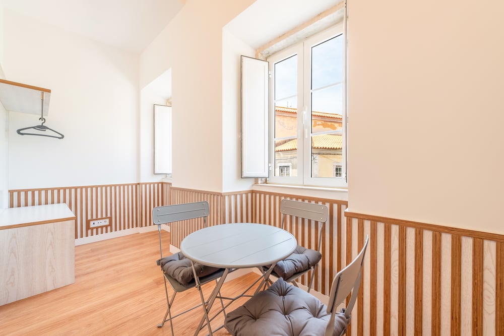 Suite privée au premier étage avec un lit double, une cuisine entièrement équipée et un salon personnel. Elle donne sur une rue tranquille dans le quartier idyllique d'Ajuda.