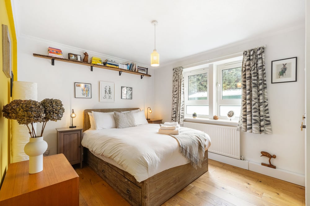 Welcome to your stylish London retreat near Stratford's bustling heart. Perfect for four, this inviting apartment offers a king bedroom, a cozy sofa bed, and a modern kitchen. Enjoy the eclectic decor and unwind in the bright living area. Discover local attractions and easy transport links just steps away.