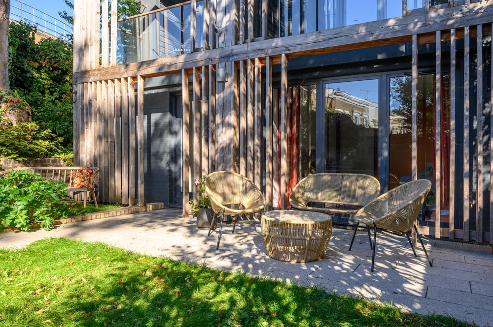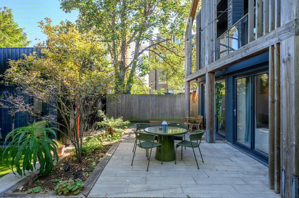 Stylish Malibu-inspired Hackney home with gardens, balconies, and space for the whole family.