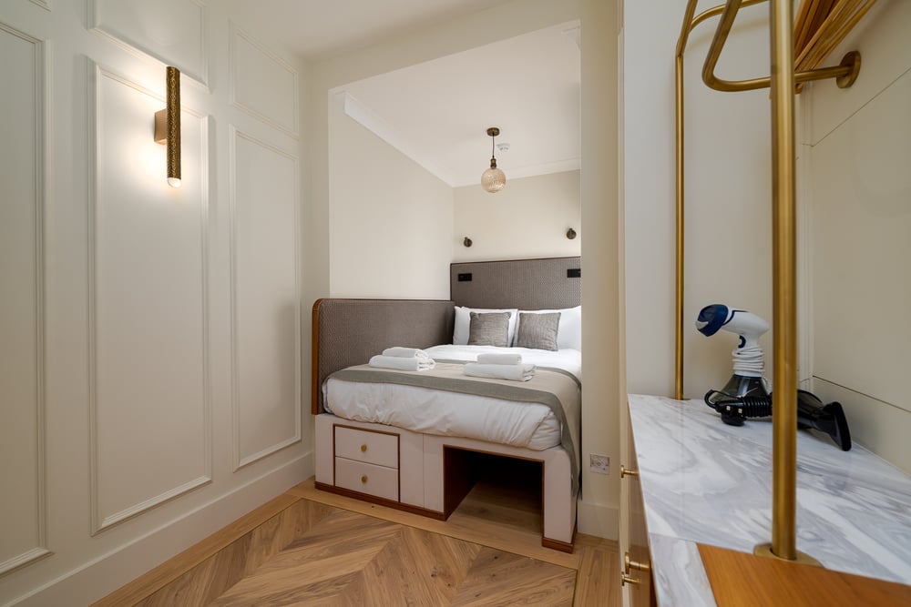 Bienvenue ! Cet élégant studio de 13 m², situé au rez-de-chaussée inférieur et accessible par des escaliers, se trouve à proximité des principales attractions de Londres, notamment Oxford Street et Regent's Park. Il allie parfaitement confort et style, avec un mobilier de bon goût et des équipements modernes. Vous y trouverez un lit double avec des draps luxueux et une télévision pour regarder vos émissions préférées. Du thé et du café instantané sont fournis gratuitement pour votre confort. La salle de bains luxueuse est dotée d'une douche à effet de pluie, de murs en marbre et d'élégantes touches dorées. La salle de bains comprend tout le nécessaire pour un séjour rafraîchissant, notamment des serviettes et des articles de toilette frais. Le studio est toujours nettoyé par des professionnels pour votre confort. Veuillez noter que le ménage n'est pas inclus dans le séjour, mais qu'il peut être organisé sur demande, moyennant des frais supplémentaires. Veuillez noter que des diffuseurs de senteurs sont placés dans l'unité, ce qui peut ne pas convenir aux personnes sensibles. Veuillez noter que les travaux de construction à proximité devraient se poursuivre jusqu'en septembre/novembre 2026. Des nuisances sonores sont à prévoir entre 8 h et 18 h. Nous vous prions de nous excuser pour la gêne occasionnée. Nous vous souhaitons un agréable séjour !