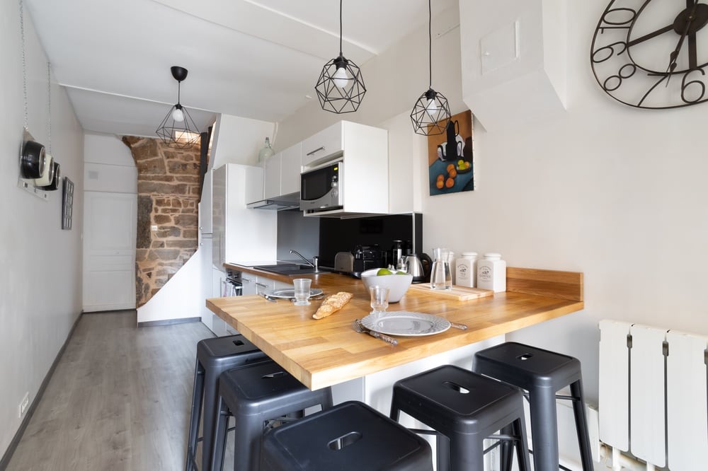 Ce duplex intégralement rénové au RDC donnant sur rue et pouvant accueillir confortablement 2 personnes vous offrira tout le confort nécessaire pour un superbe séjour. Agencement: - Une entrée - Cuisine ouverte intégralement meublée et équipée, réfrigérateur, four, micro-onde, ustensiles et vaisselle, plaques de cuisson, ... - Un salon lumineux et spacieux avec TV à écran plat et canapé. - Confortable et bas de plafond (1,4-1,8m de haut) - Une chambre avec grand lit en 160 X 200, dressing sur mesure - Salle d'eau moderne avec douche et WC au rez-de-chaussée (l'escalier est un peu raide). - Il y a un peu de bruit venant de l'extérieur car l'isolation phonique est un peu mince. Afin de vous assurer un confort optimal durant votre séjour, nous vous fournissons: - les draps pour la literie - les serviettes de bain et essuie main - le torchon de cuisine - le gel douche (1 par personne) et savon - les capsules de café de bienvenue - les sachets de thé - le fond de cuisine: sucre, sel, poivre, huile, vinaigre, moutarde. - un ventilateur L'appartement est intégralement réservé aux voyageurs.